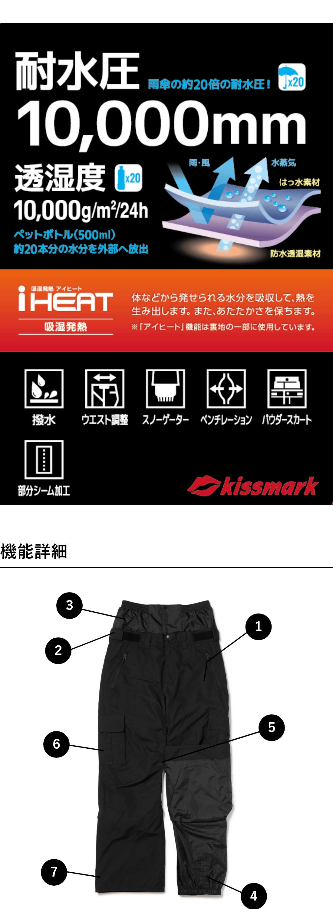 キスマーク メンズ スノーボード パンツ ユニ スノーボードパンツ KM-5S025 kissmark