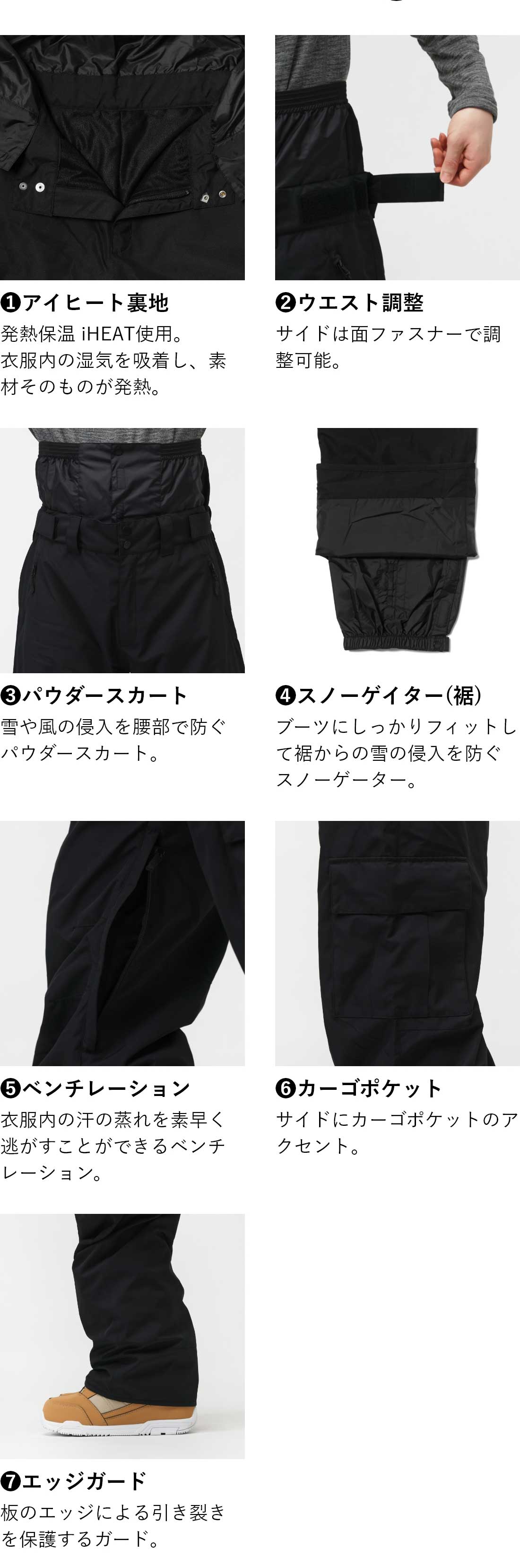 ◇ゆったりとしたワイドサイズのマルチパンツ。腰で履くとよりダボっとワイド、ウエストで穿くとスッキリワイドに。穿く位置でシルエットをアレンジできます。カーゴポケットがアクセントに。雪の侵入を防ぐパウダースカート付き。ファスナー付きポケットで小物の落下防止に。