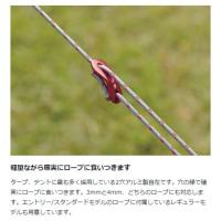 ◆テントやタープを大地に固定するロープを、ピンと張るための小さな必需品。