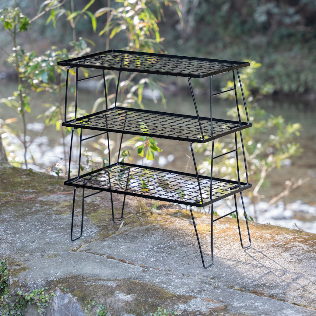 ◇スチール製なのに軽量1.5kgのアウトドアラック 3点セット
