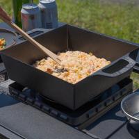 ◇油なしでも焦げにくい特殊加工で、キャンプの卓上をお手軽に華やかに彩る
