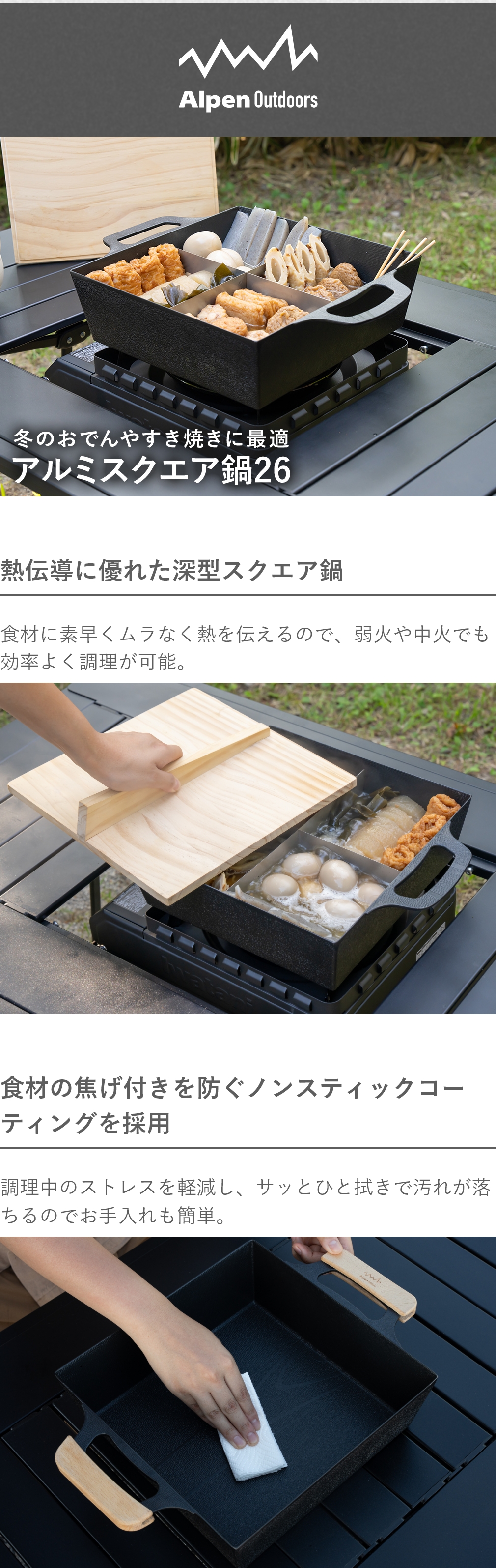 アルペンアウトドアーズ アルミスクエア鍋26 キャンプ クッキング Alpen Outdoors AOD