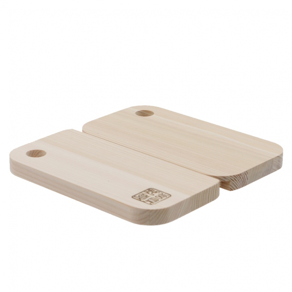 ◇国産桧を使用した日本製のまな板。2枚物で絵のように差し込むとサイズが大きくなります。