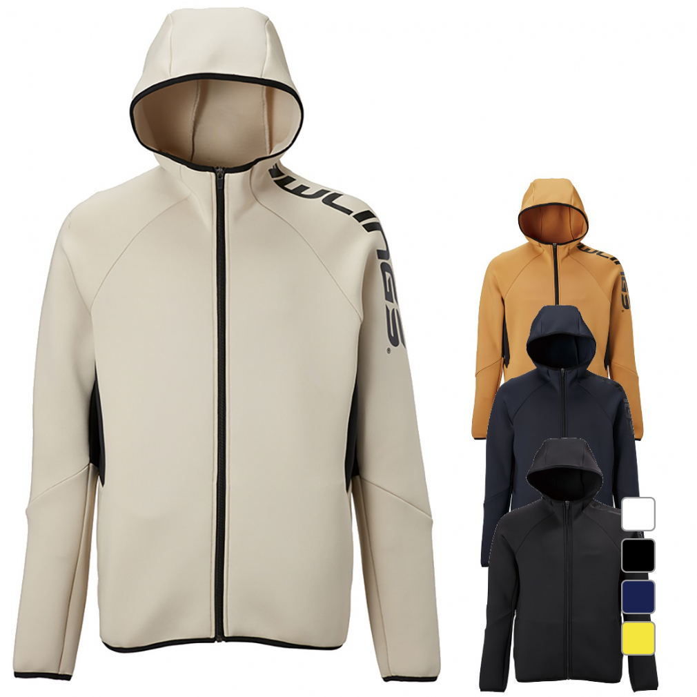 ◇かさ高で肉厚でも軽量なボンディングニット素材のフーデッドジャケット。