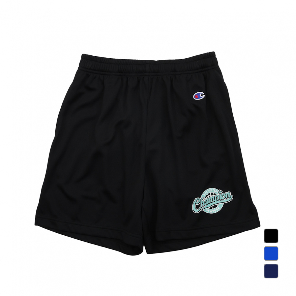 ◇環境に配慮されたリサイクルポリエステル100%でメッシュ調の素材にストレッチ性と吸汗速乾機能を兼ね備えた生地を使用したジュニアショーツです。トレンドのショート丈で、左裾には「Champion(チャンピオン)」とバスケットボールを組み合わせたエンブレム風のグラフィックをラバープリントで入れています