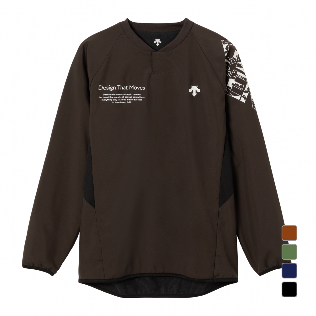 ◇保温性に優れたウォーマージャケットです。汗のかきやすい脇部分には速乾性に優れたメッシュ素材を配置しています。また、着脱がしやすいように、襟元にボタンを配置しています。肩口の迷彩プリントがデザインアクセントの秋冬使用のジャケットです。