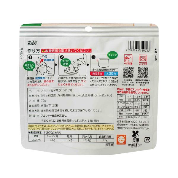 うるち米(国産)、味付乾燥具材(わかめ、食塩、砂糖、かつお節エキス)