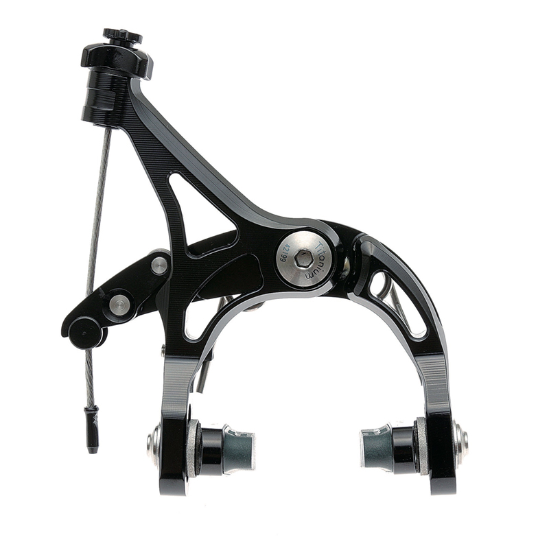 ・シューの可動範囲を通常の最大49mmから2mm多く51mmに設定し、昨今のカーボンフレームによくあるオーバー気味の仕上げにも対応できるように考慮しています。