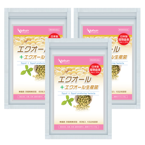 エクオール お得な3袋セット エクオール産生菌 サプリ ラクトビオン酸 米糠・大豆エキス納豆菌発酵物 プラセンタ チェストベリー 田七人参 女性ホルモン
