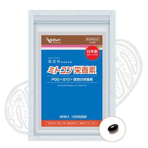 ミトコン栄養素は、還元型コエンザイムQ10とPQQをはじめ、マカ、カルニチン、亜鉛、葉酸、鉄分、ビタミンなどを配合。