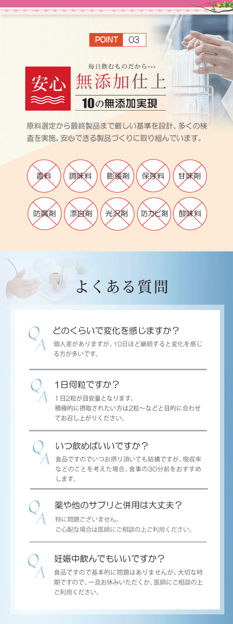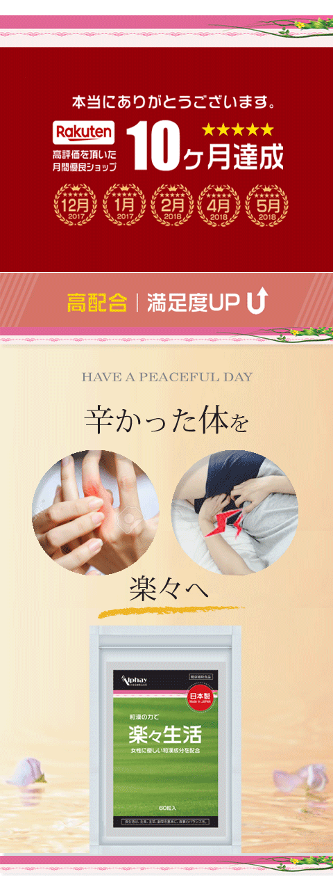 原材料名:大豆胚芽抽出発酵物(国内製造)、オオイタドリ若芽エキス末、MSM、GABA(γ-アミノ酪酸)、プラセンタエキス末、ラクトビオン酸含有乳糖発酵物(乳成分を含む)、筋骨草エキス末、田七人参エキス末、生姜末/セルロース、ステアリン酸カルシウム、微粒二酸化ケイ素、ビタミンB2、ビタミンB1、ビタミンB6、ビタミンB12、葉酸