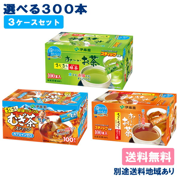 お〜いお茶 さらさら 緑茶 ほうじ茶 健康ミネラルむぎ茶 選べるセット 0.8g x 300本 (100本入 x 3ケース) 送料無料 別途送料地域あり