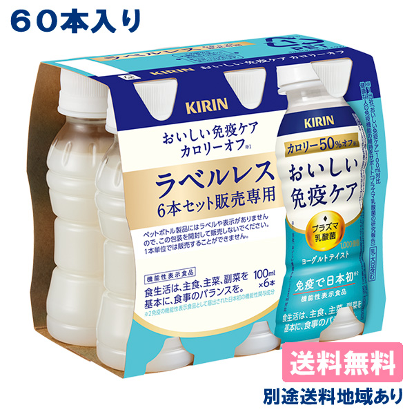 キリン おいしい免疫ケア カロリーオフ ラベルレス PET 機能性表示食品 100ml x 60本(30本入 x 2ケース)送料無料 別途送料地域あり