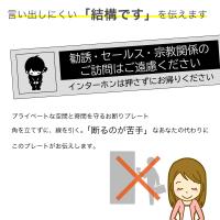 セールスや勧誘、宗教関係などの訪問を強い言葉を使わず、やさしく伝えるための玄関用プレートです。