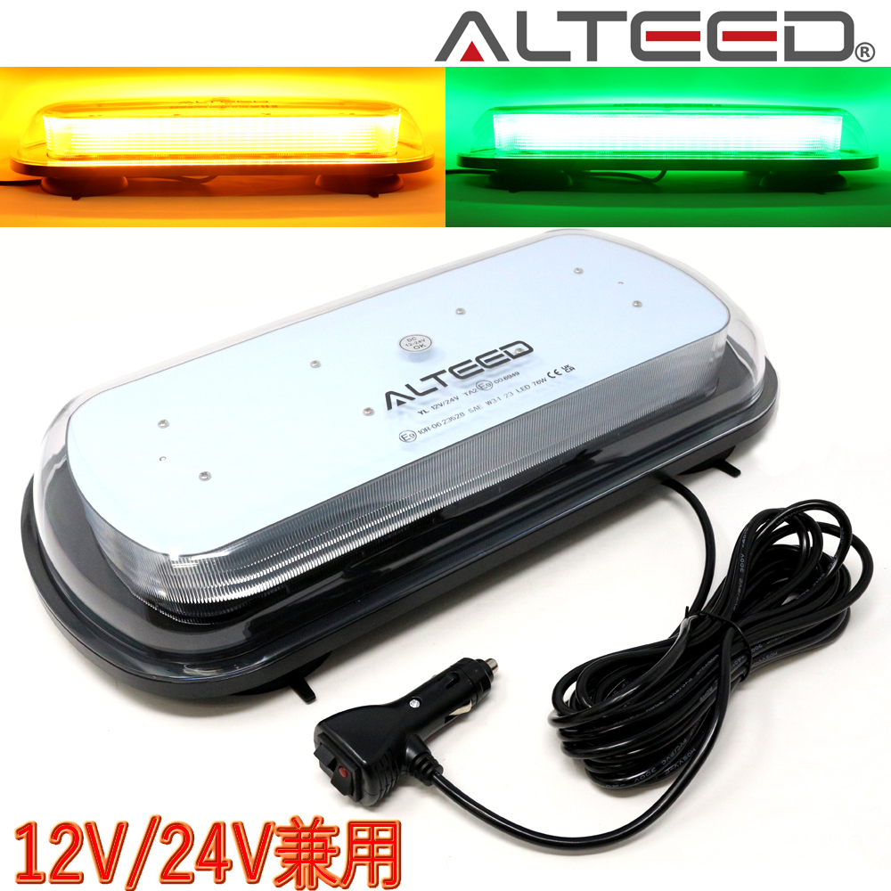 | 作動パターン:点滅、回転、点灯等26パターン 本体サイズ:435mm×215mm×77mm(マグネットステー含む) ※本体のみ高60mm 配線長:約5m 質量:本体約1900g 対応電圧:DC10-30V 消費電流:0.5-3.5A 防水防塵規格:IP67 作動温度:-30℃〜+60℃ 主素材:PC/ステンレス/マグネット EMC規格認証:ECE R10 |