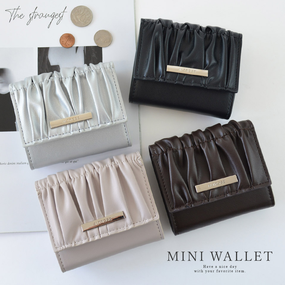 | ・普段使いはもちろん、旅行にも活躍してくれる三つ折り財布。 ・くしゅくしゅっとしたギャザーが可愛い♪ ・内側の小銭入れは、見やすく取り出しやすいボックス型。 ・縦からも横からも出し入れできる札入れで、支払いもスマート。 ・内側のカードポケットは7つあり、見た目以上の収納力もポイント。 ・片手に収まるちょうどイイサイズ感で、小さめのバッグにもぴったり。 |