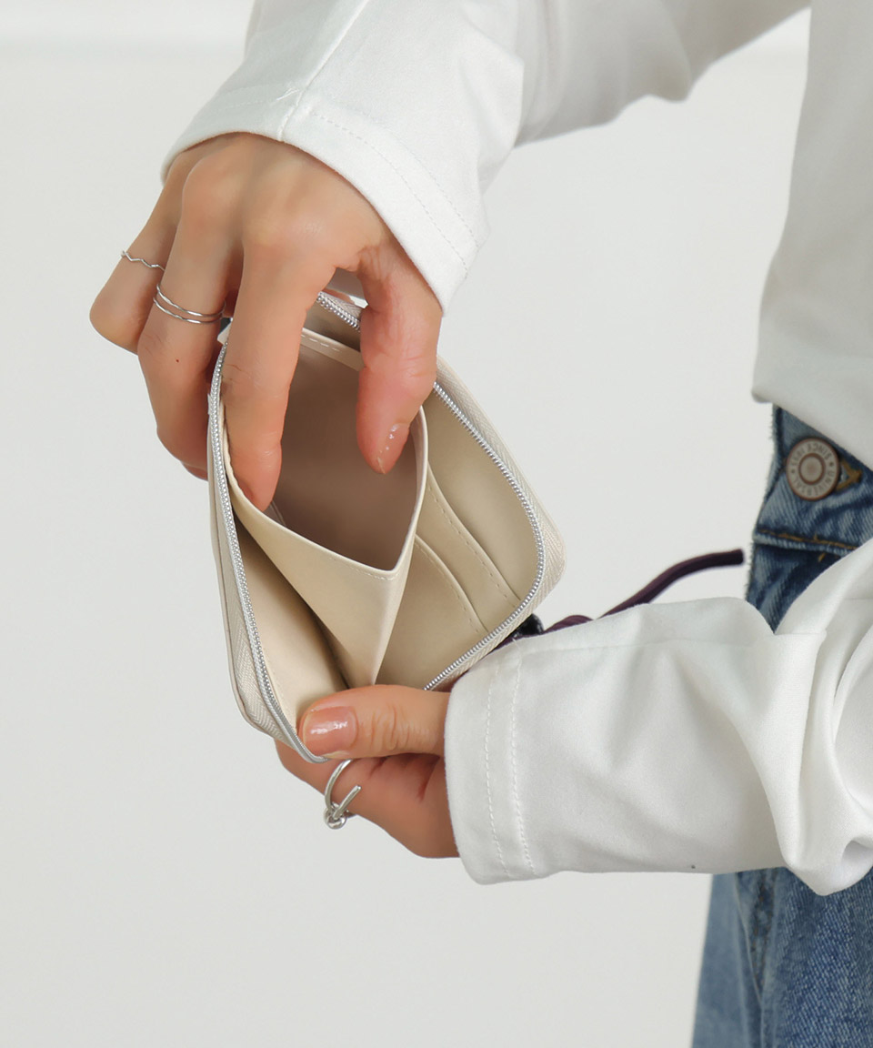 | ・デイリー使いしやすい薄くてミニマルなミニ財布です。 ・取り外し可能なコードロープチャームがポイント♪ ・内側にはカードポケットが4つと小銭入れにもなるオープンポケットが付いています。 ・お札は2つ折りにして収納していただけます。 ・L字ファスナーで中身がサッと取り出しやすい! ・スマートなサイズ感でトレンドのミニバッグにも◎ ・フェスやアウトドアなど様々なシーンで活躍してくれます。 ・最低限の荷物を持ち運びたい派の人にもオススメ。 |