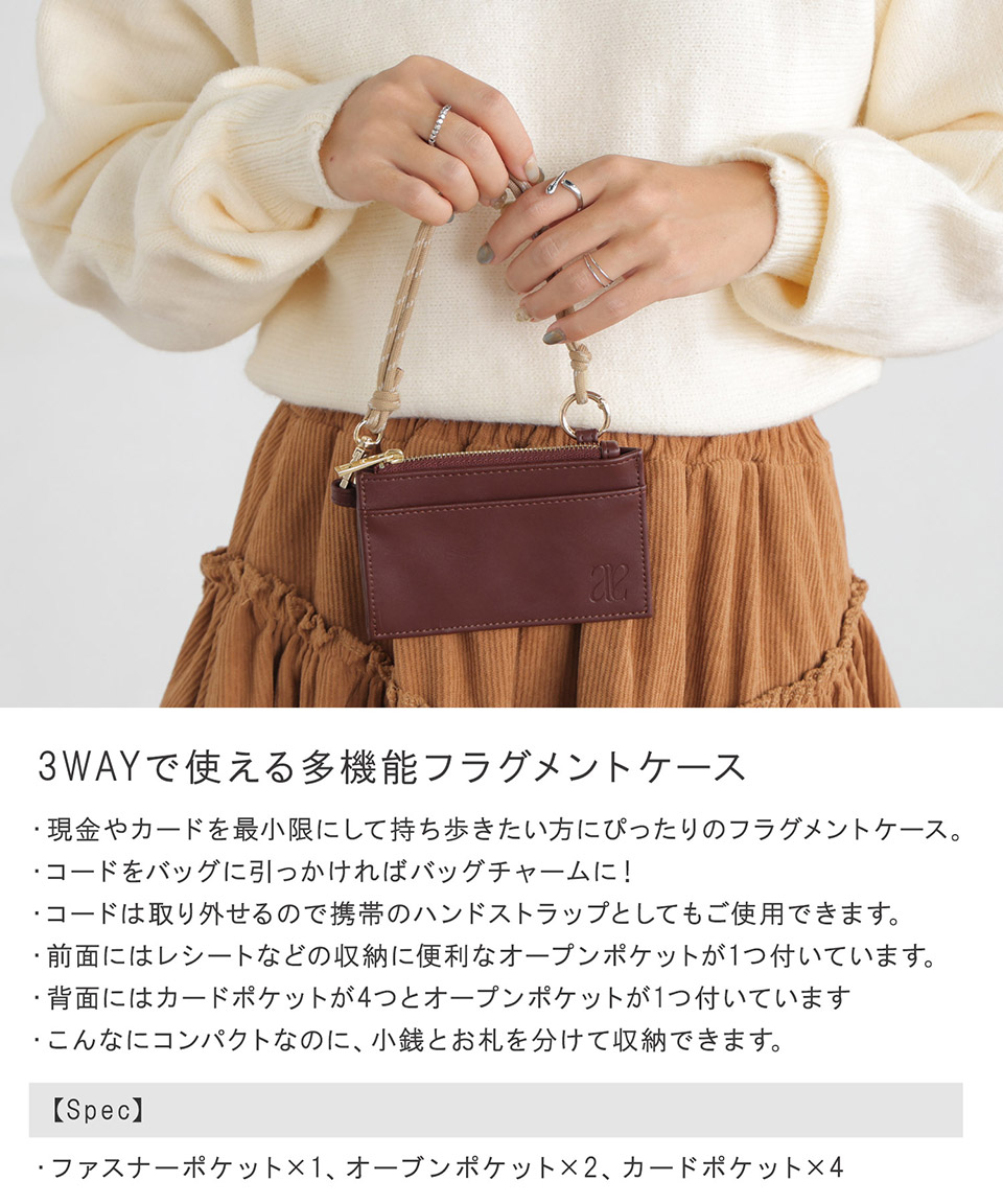 | 3WAY フラグメントケース フラグメント カードケース ICカード 薄い 薄型 財布 ミニ財布 コインケース コード付き ストラップ 軽い 軽量 ファスナー ファスナー開閉 ファスナー付き チャック チャック付き ポケット ぽけっと ポケット付き レザー レザー調 レザー風 革 皮 合皮 合成皮革 フェイクレザー ロゴ ワンポイント スマホストラップ スマホショルダー 無地 かわいい 可愛い フェミニン シンプル カジュアル かっこいい クール エレガント 綺麗め きれいめ アウトドア レジャー 散歩 海 山 キャンプ イベント フェス 祭り 花火 遠足 観光 動きやすい 旅行 トラベル 国内旅行 海外旅行 日帰り 1泊 2泊 泊り 就活 新卒 面接 中途 新社会人 ビジネス 春夏 春用 夏用 秋冬 秋用 冬用 春 夏 秋 冬 オールシーズン ブラック 黒 黒色 くろ くろいろ アイボリー ホワイト 白 白色 しろ しろいろ モカ キャメル ブラウン 茶 茶色 ちゃ ちゃいろ レディース ファッション雑貨 人気 安い 通勤 通学 会社 学校 お出かけ おしゃれ お洒落 オシャレ 大人 プチプラ ぷちぷら 10代 20代 30代 40代 女性 ママ 女子 女子高生 高校生 大学生 学生 OL 社会人 普段使い 旅行 デート ギフト プレゼント 母の日 クリスマス 誕生日 ALTROSE アルトローズ |