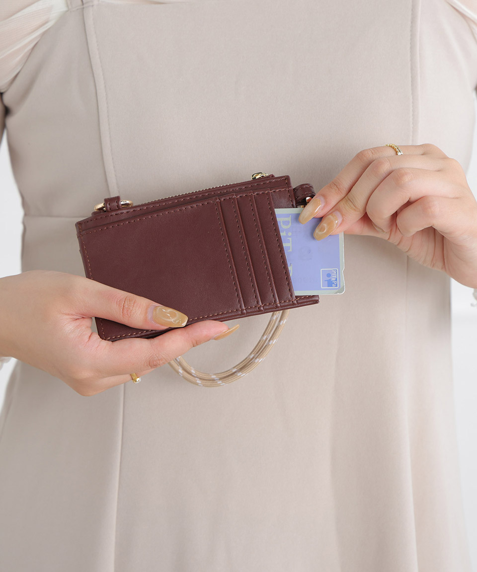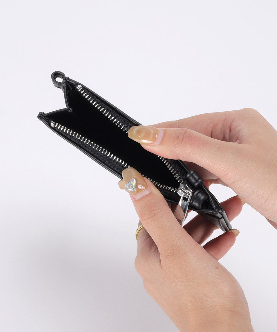 | ・現金やカードを最小限にして持ち歩きたい方にぴったりのフラグメントケースです。 ・コードをバッグに掛ければバッグチャームに! ・コードは取り外せるので携帯のハンドストラップとしてもご使用できます。 ・前面にはICカードやレシートなどの収納に便利なオープンポケットが1つ付いています。 ・背面にはカードポケットが4つとオープンポケットが1つ付いています ・こんなにコンパクトなのに、小銭とお札を分けて収納できます。 |