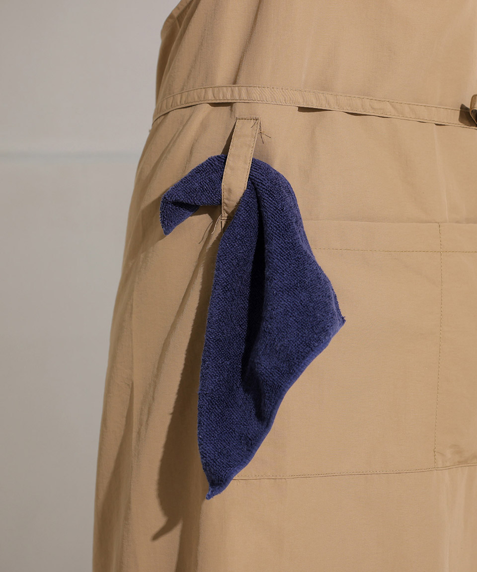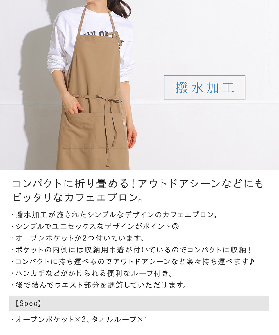 | ・撥水加工が施されたシンプルなデザインのカフェエプロン。 ・シンプルでユニセックスなデザインがポイント◎ ・オープンポケットが2つ付いています。 ・ポケットの内側には収納用巾着が付いているのでコンパクトに折り畳むことが可能! ・コンパクトに持ち運べるのでアウトドアシーンやお料理教室などにも楽々持ち運べます♪ ・ハンカチなどがかけられる便利なループ付き。 ・後で結んでウエスト部分を調節していただけます。 ・撥水加工が施されているのも嬉しいポイント! ※撥水加工を施した生地を使用していますが、防水構造ではありません。 |
