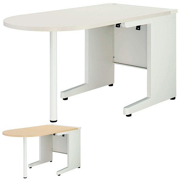 材質 | 天板:木製、メラミン化粧板、ポリオレフィン系樹脂エッジ 配線カバー:スチール、メラミン焼付塗装(ピュアホワイト)、オレフィン樹脂 本体:スチール、粉体塗装(ホワイト) 脚ベース:ABS樹脂カバー、アジャスター付 脚パイプ:Φ50mmスチールパイプ、粉体塗装(ホワイト)、アジャスター付 |