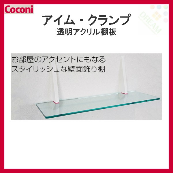 壁付け棚受用棚板 透明アクリル棚板1枚 Coconi I'm CLAMP アイム・クランプ CC-550 AG 6020 サイズW600×D200×厚み8mm 重量1.2kg [棚板のみ]