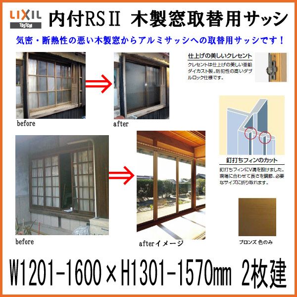 木製窓取替用アルミサッシ 窓用 2枚引違い 内付型枠 巾1201-1600 高さ1301-1570mm LIXIL/TOSTEM リクシル RSII