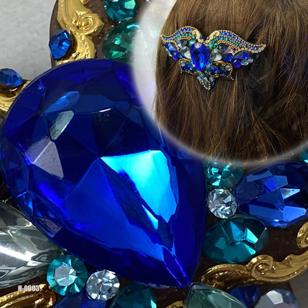 送料無料!! ゴージャス!! キラキラ バレッタ パーティー 発表会 社交ダンス ブルー ラインストーン 髪飾り