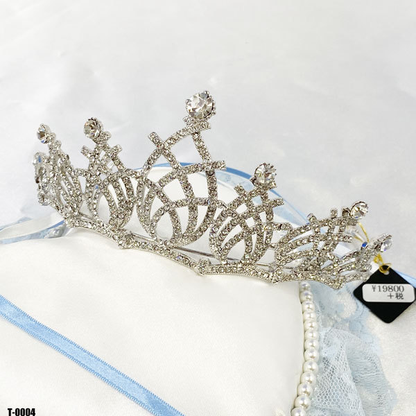 高級!ティアラ 王冠 髪飾り 花嫁 結婚式 お姫様 ブライダル ウェディング クラウン ヘアーアクセサリー クシ無しタイプ ◇T-0004