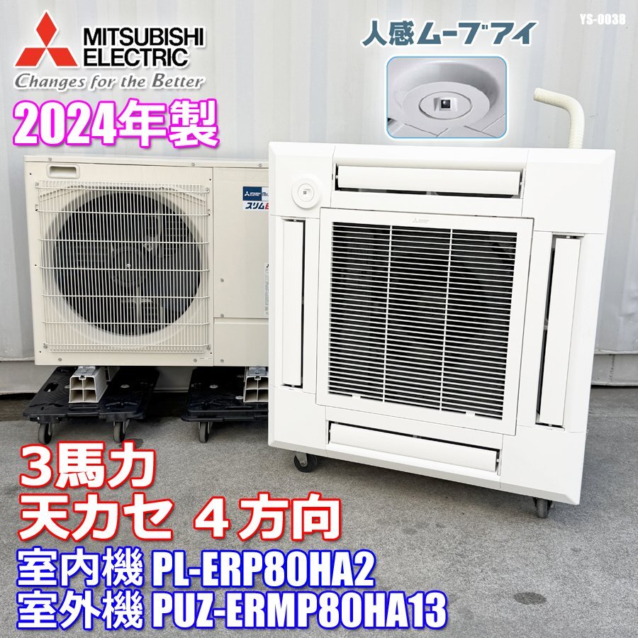 三菱 業務用 パッケージエアコン 2024年製 天カセ 3馬力 4方向 ムーブアイ リモコン PL-ERP80HA2 PUZ-ERMP80HA13 PLZ-ERMP80HE3 ◇YS-38
