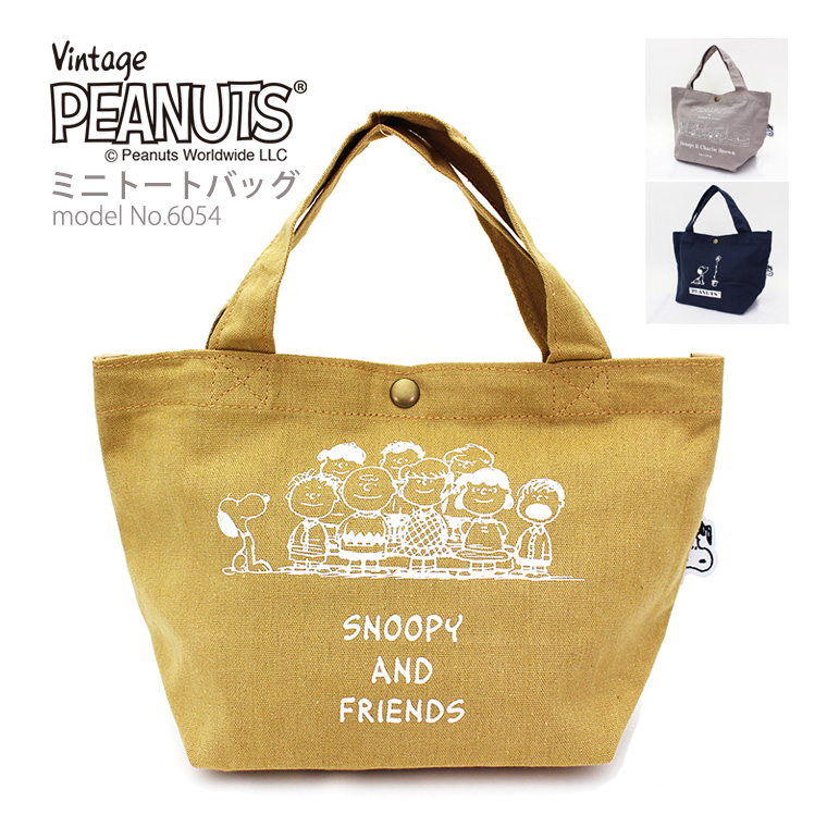 スヌーピーたちのプリントが可愛いミニトートバッグ。