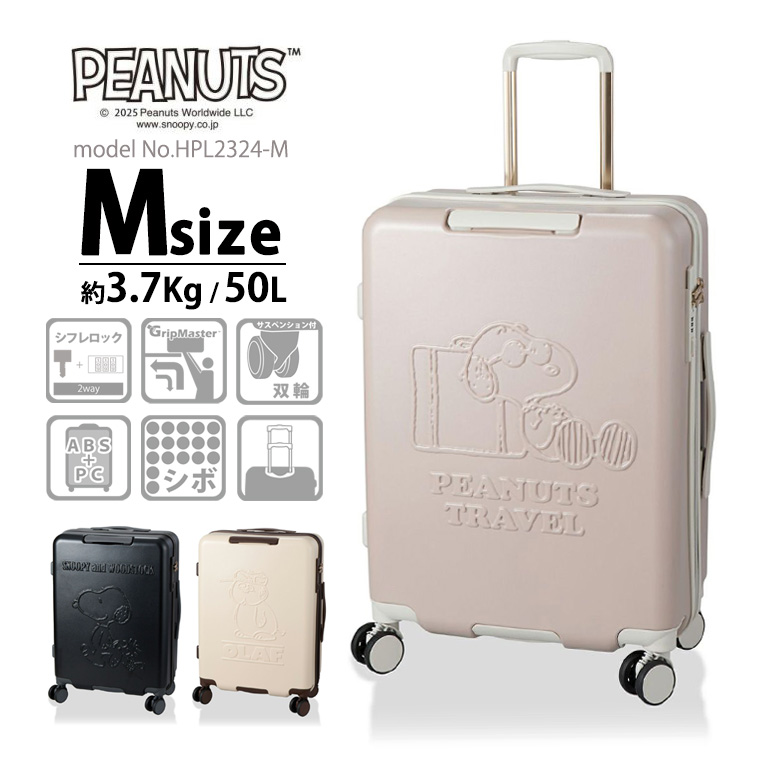 【最大15%OFFクーポン3/31まで】 スヌーピー スーツケース キャリーバッグ キャリーケース Mサイズ 中型 軽量 双輪キャスター シフレ 1年保証付 HPL2324-M 50L