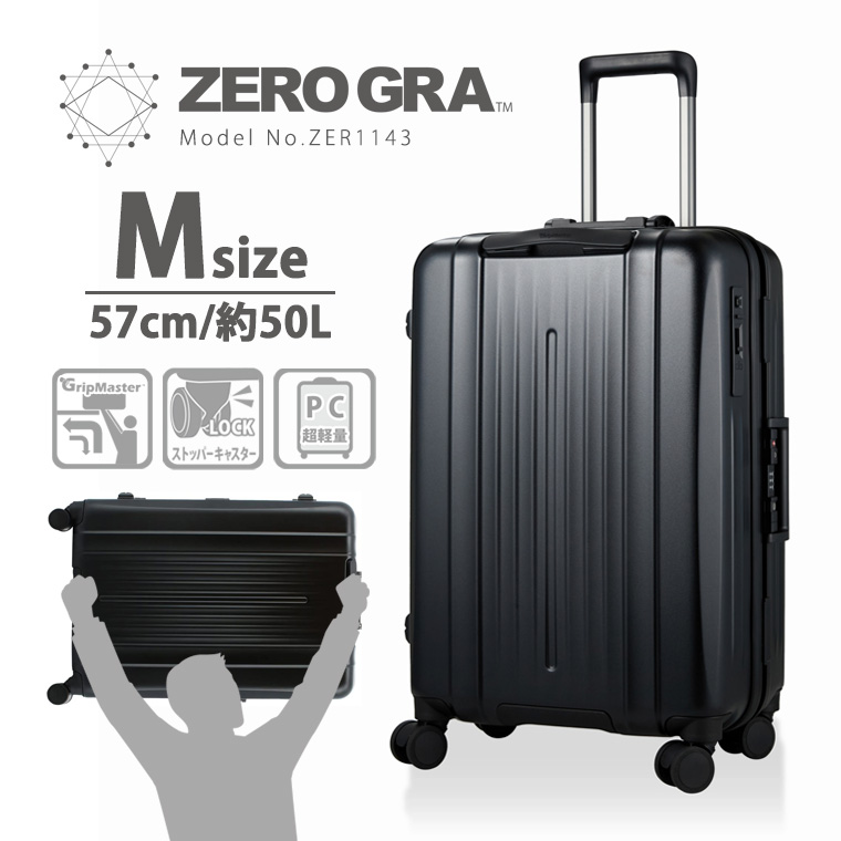 【最大15%OFFクーポン】 スーツケース キャリーケース 超軽量 中型 Mサイズ ストッパー双輪キャスター シフレ 5年保証 ZEROGRA ゼログラ ZER1143 57cm