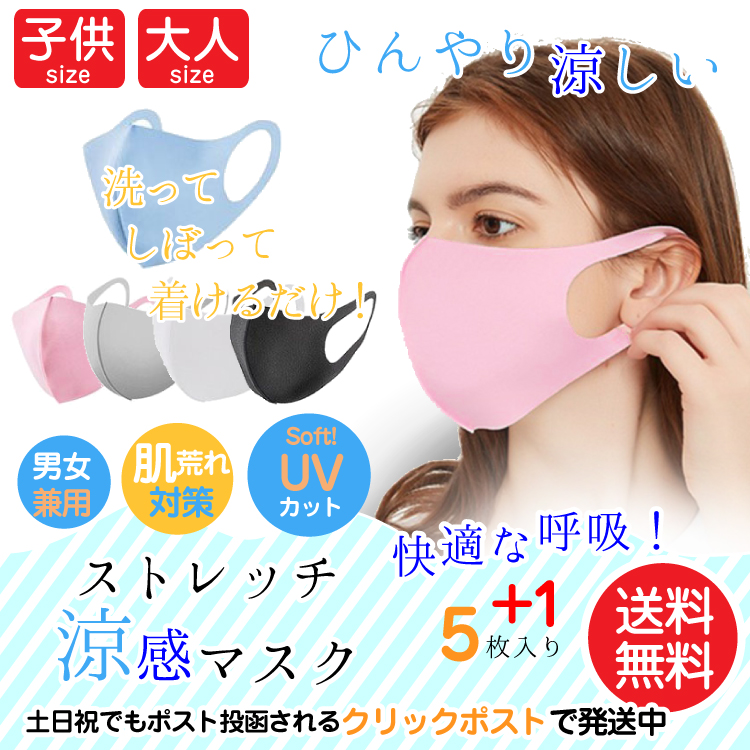 春夏マスク 5+1枚入り枚入り 大人用 個別包装 冷感マスク クールマスク 接触冷感 冷感 紫外線 日よけ対策 送料無料