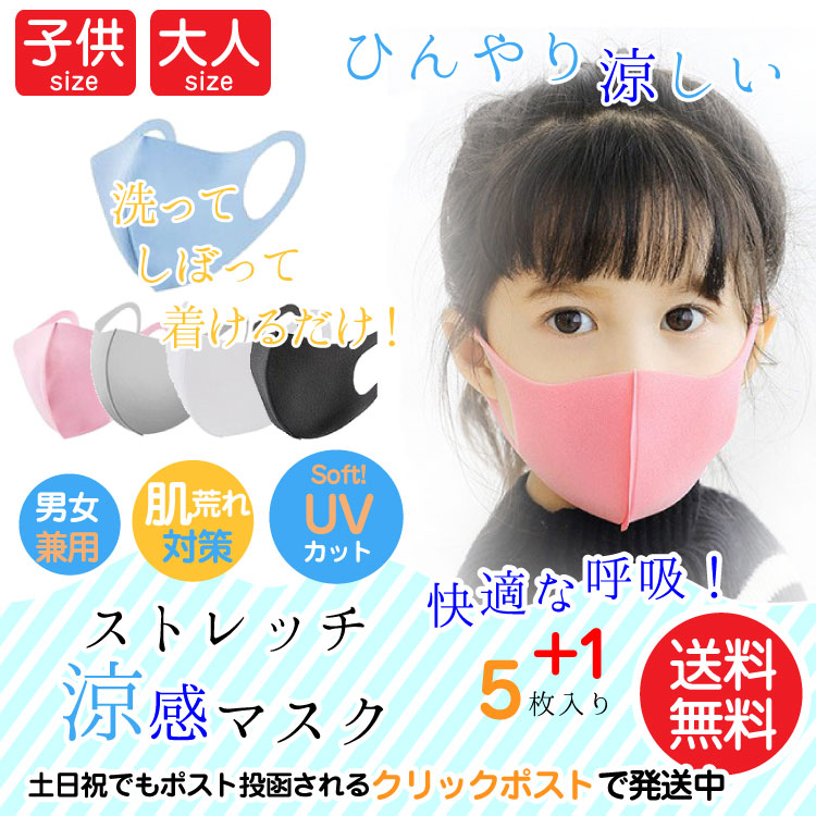 春夏 マスク 即納 こども用 5+1枚入り 個別包装 冷感マスク uvカット 夏マスク クールマスク 接触冷感 冷感 紫外線 日よけ対策 送料無料