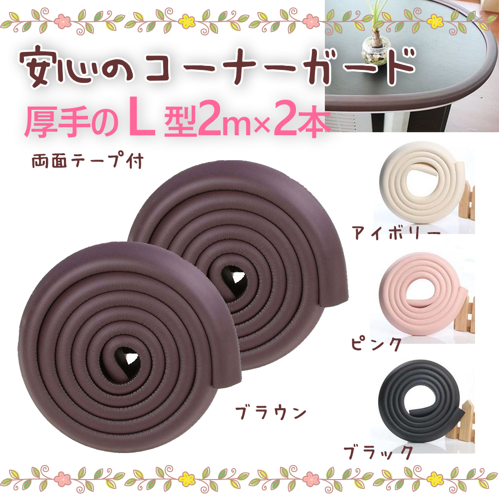 ベビー コーナーガード 2m×2本 特厚 ブラウン アイボリー ピンク ブラック