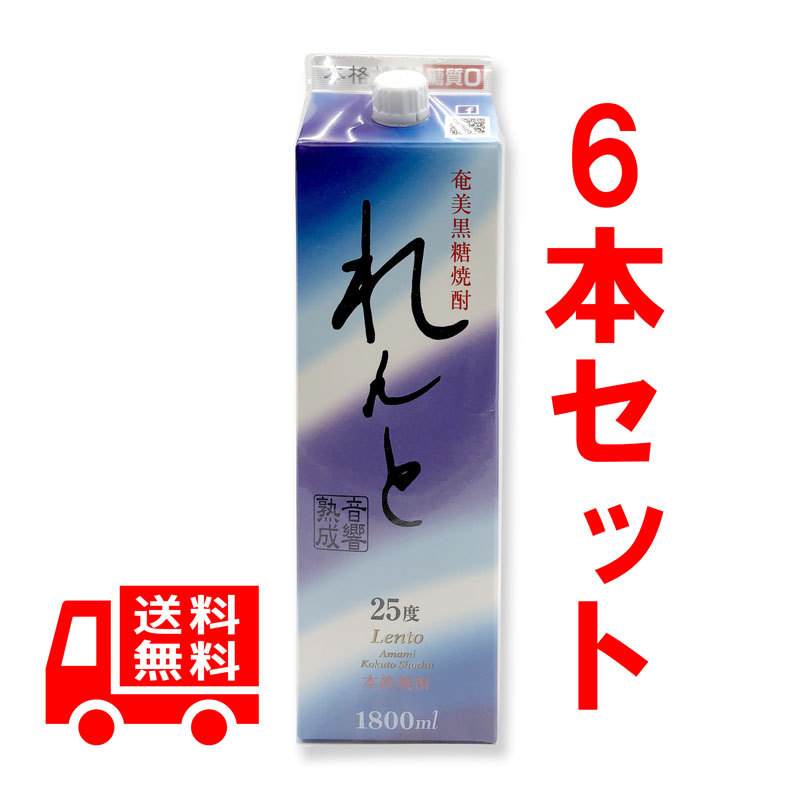 送料無料 れんと 紙パック 25度 1800ml 6本セット 黒糖焼酎