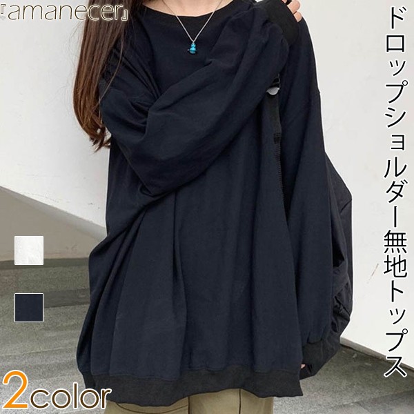 ドロップショルダー無地トップス