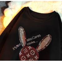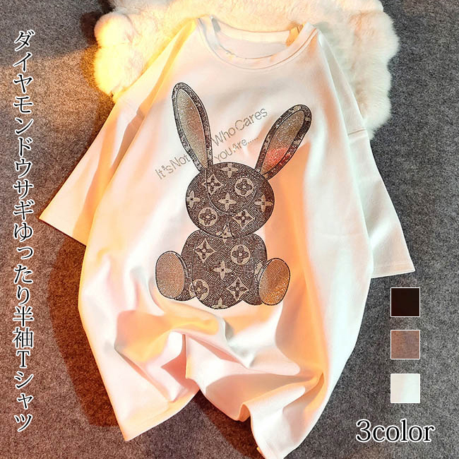 期間限定(クーポンで1974円!)ゆるTシャツ ウサギ ロングT プルオーバー フェイクダイヤモンド 半袖 レディース トップス