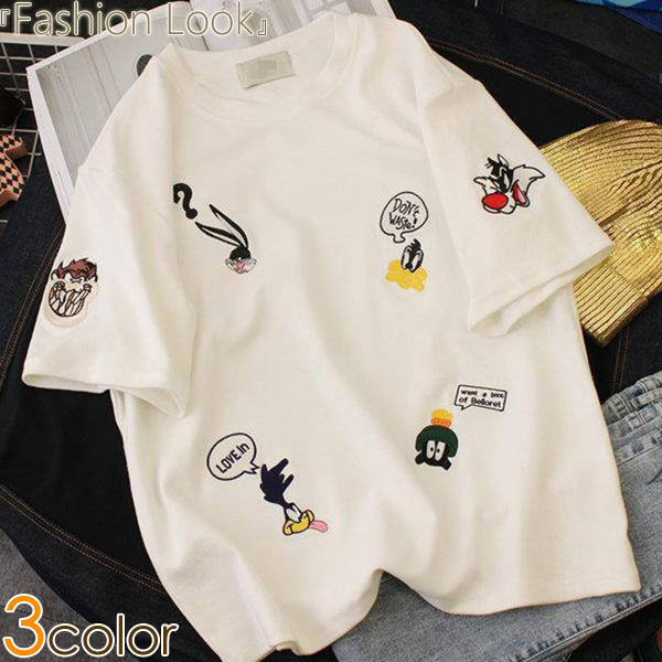 トップス Tシャツ 夏Tシャツ ラウンド襟 刺繍 アニマル柄 無地 夏 春夏 新作