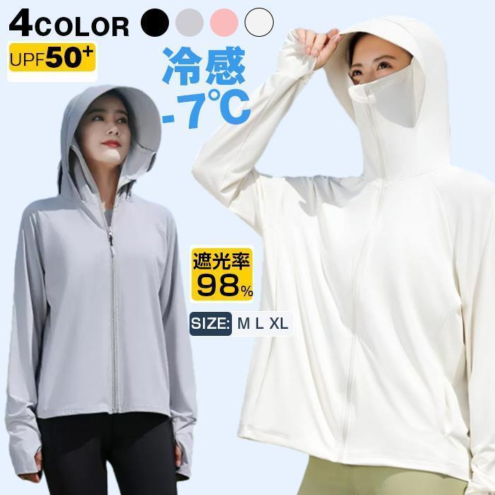 UV パーカー 冷感 -7℃ レディース 長袖 ラッシュガード UVカット アウター 通気口 指穴 つば 取り外しサンバイザー 日焼け防止