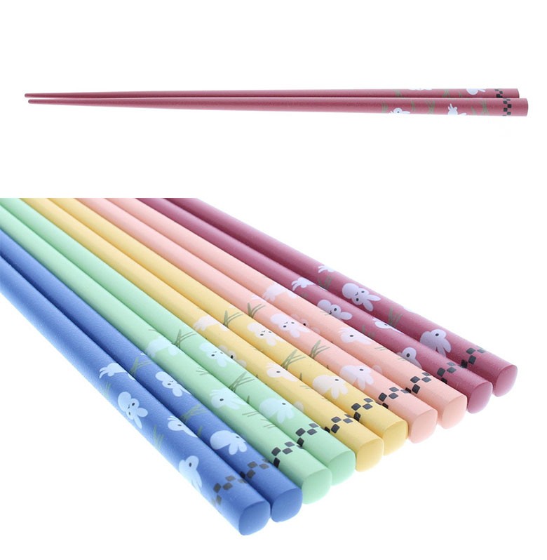 イシダ お箸 客用 5膳組 乾漆野 うさぎ 日本製 ヘッダー 滑り止め加工 23cm ハシ はし お箸 セット 色違い カラフル ウサギ かわいい 和風 天然木 キッチン 料理 使いやすい 天然 国産 柄違い おしゃれ ゲスト ご飯 食事 ブルー グリーン ピンク イエロー