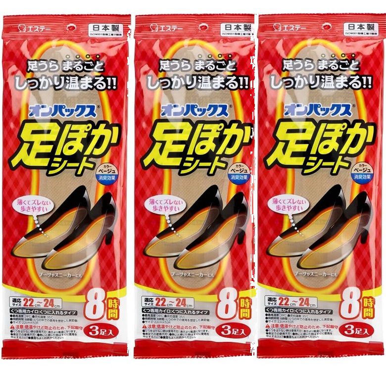 靴用カイロ まとめ買い オンパックス 足ポカシート 8時間 22cm〜24cm 3足分入 くつに入れるカイロ 貼らない はらない 3個セット