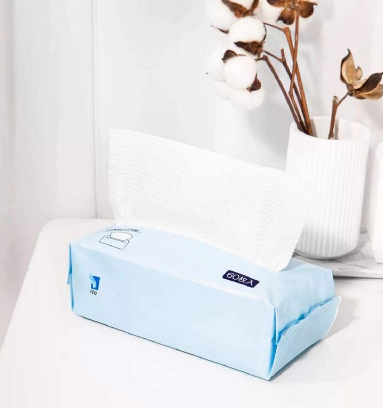 ITO フェイシャルタオル 60枚入 使い捨て ティッシュ型 使い捨てタオル エンボス加工 衛生的 吸水性