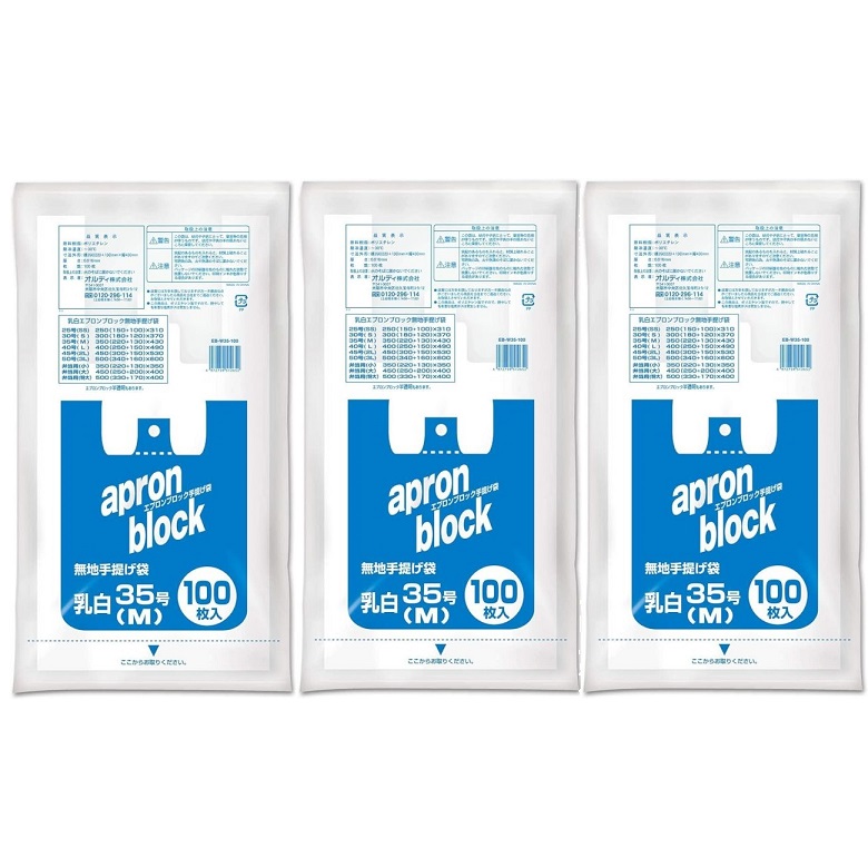 エプロンブロック (M) 35号 乳白 100枚入 取っ手付き 手付き ポリ袋 ゴミ袋 ごみ袋 EB-W35-100 【×3個セット】