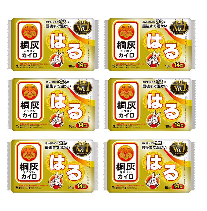 【商品名】 カイロ はる 貼る 10個入 桐灰 キリバイ 【×6個セット】 衣類に貼るカイロ寒い日などの冷えに 最後まで温かい14時間持続寒い日などの冷えに最後まで温かい衣類に貼るカイロ●裏面もよくお読みください。●最高温度63℃※●平均温度53℃※●持続時間14時間※●13cm×9.5cm(10個入)※表示の最高温度・平均温度・持続時間は都条例にもとづく測定値ですので人体にてご使用の場合は若干の差異があります。売上 使い捨てカイロ全般用市場 No.1* メーカー別売上計*インテージSRI+ 2021年11月〜2022年10月 累計金額原材料・成分鉄、活性炭、バーミキュライト、水