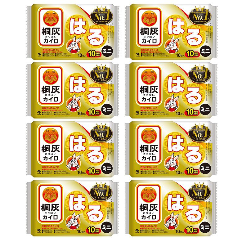 【商品名】 カイロ はる 貼る ミニ 10個入 桐灰 キリバイ 【×8個セット】 衣類に貼るカイロ●裏面もよくお読みください。●最高温度63℃※●平均温度53℃※●持続時間10時間※●9.5cm×7cm(10個入)※表示の最高温度・平均温度・持続時間は都条例にもとづく測定値ですので人体にてご使用の場合は若干の差異があります。売上 使い捨てカイロ全般用市場 No.1* メーカー別売上計*インテージSRI+ 2021年11月〜2022年10月 累計金額原材料・成分鉄、活性炭、バーミキュライト、水