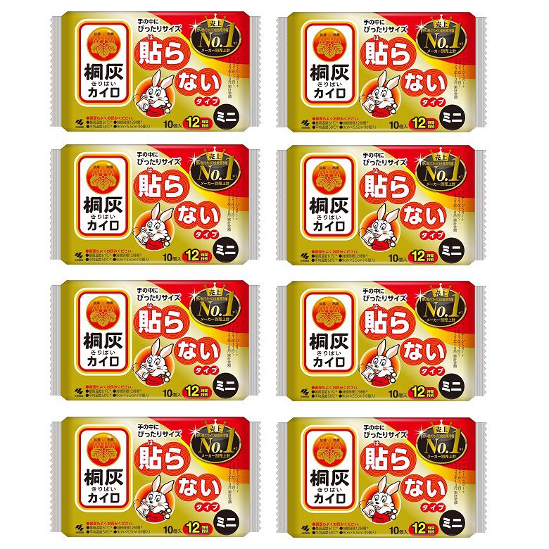 【商品名】 カイロ はらない 貼らない ミニ 10個入 桐灰 キリバイ 【×8個セット】 通勤・通学に 手の中にぴったりサイズ 貼らないタイプ●裏面もよくお読みください。●最高温度61℃※●平均温度50℃※●持続時間12時間※●9cm×5.5cm(10個入)※表示の最高温度・平均温度・持続時間は都条例にもとづく測定値ですので人体にてご使用の場合は若干の差異があります。売上 使い捨てカイロ全般用市場 No.1* メーカー別売上計* インテージSRI+ 2021年11月〜2022年10月 累計金額原材料・成分鉄、活性炭、バーミキュライト、水