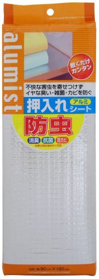 商品説明 | 商品サイズ(約):90X180cm(厚み:1mm) 本体:ポリエチレン(上面:PETアルミ蒸着フィルム)耐熱温度(約60℃) 表面にはムシのイヤがるアルミフィルムを使用し裏面の 発泡ポリエチレンに安全性の高い 防虫・消臭・抗菌・防カビ剤を配合したシートです。 敷くだけで収納物をイヤな害虫から守り 不衛生な雑菌の増殖やニオイ・カビの発生を防ぎますので 清潔に安心してお使いいただけます。 表面は汚れても拭き取りやすくお手入れが簡単です。 また下からの湿気や汚れを防ぎます。 クッション性があるので棚板や床面を傷めず収納物による傷つきを防ぎます。 使用場所のサイズに合わせてハサミなどで自由にカットしてください。 不快な害虫を寄せつけずイヤな臭い・雑菌・カビを防ぐ |