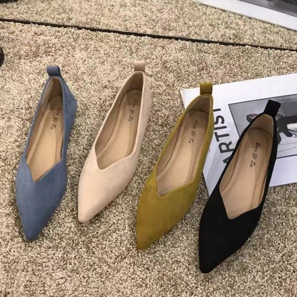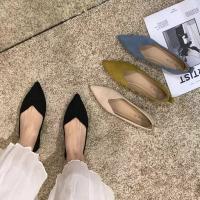ポインテッドトゥ パンプス フラットシューズ ローヒール スエード シューズ